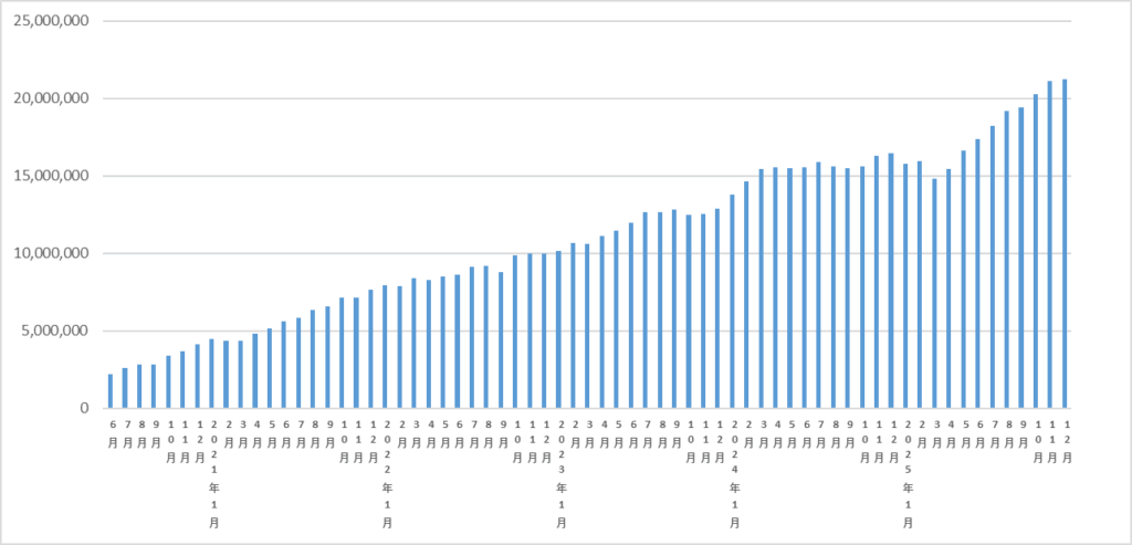今年は、2030年までの目標だった2000万円にも到達しました!正直、1年目から、「割と早い段階で達成するだろう」と考えておりましたが、約半分の期間で達成するとは思いませんでした。